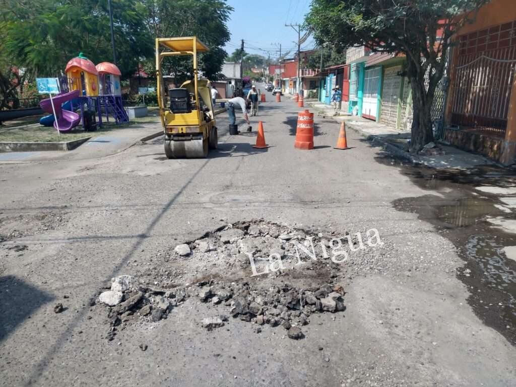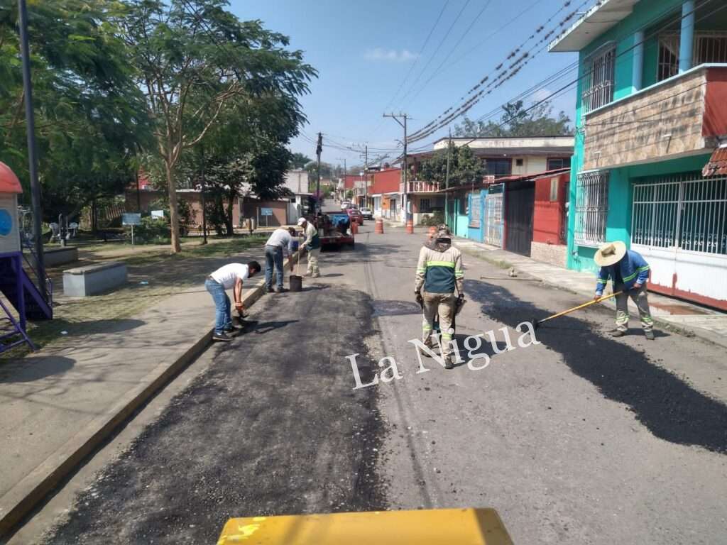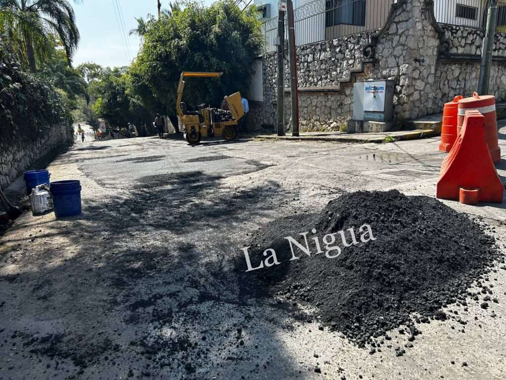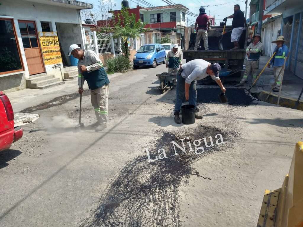 El bacheo que se lleva a cabo en coordinación con Desarrollo Urbano, comenzó con el tramo de Shangri-La hacia Los Pinos, hoy continuó en la colonia de los maestros y mañana la cuadrilla realizará los trabajos en la colonia Adalberto Díaz Jácome.