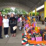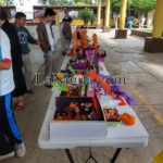 PASO DE MACHO, VER.- Alumnos, paterfamilias y profesores realizaron este jueves una exposición de mini altares y tapetes por el Día de Muertos, en las instalaciones de la escuela, entere cantos y descripciones de la cultura mexicana.