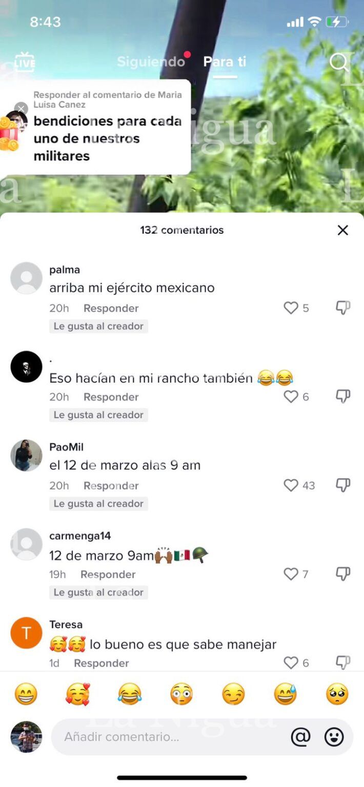 Desde la plataforma de TikTok cientos de cuentas han emprendido una campaña dirigida a la milicia y ciudadanía para que acudan este 12 de marzo al Ángel de la Independencia para manifestarse y brindar su poyo a los elementos del ejército mexicano que se encuentran detenidos por la muerte de cinco civiles y la lesiones de otro en los hechos que ocurrieron en la ciudad de Nuevo Laredo Tamaulipas