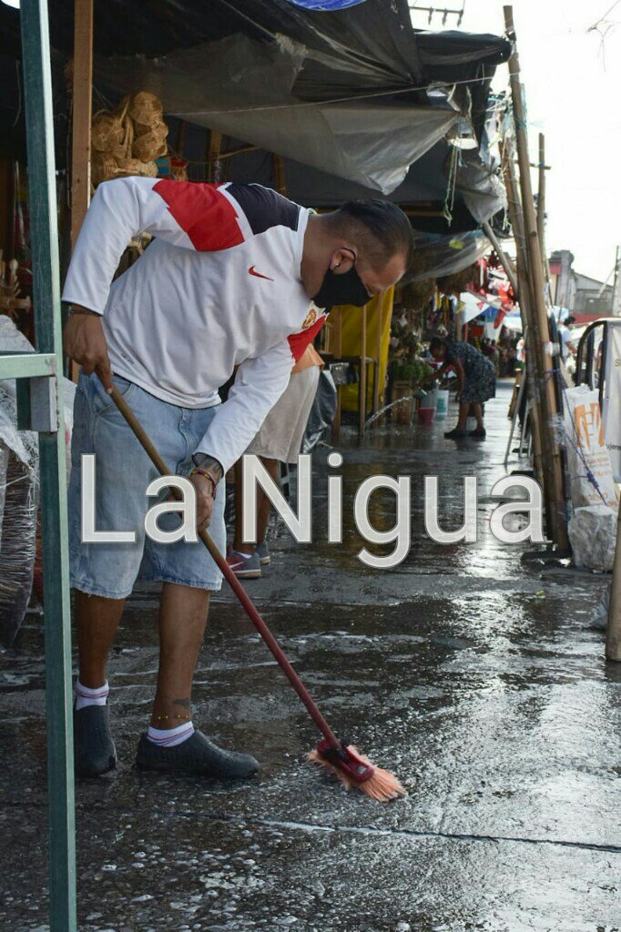 Locatarios del mercado Revolución, con apoyo del Ayuntamiento de Córdoba y de la paramunicipal HidroSistema, realizaron una nueva jornada de limpieza y lavado en las instalaciones del zoco como parte de las acciones implementadas para contribuir a la prevención de contagios de COVID19 entre comerciantes y consumidores.