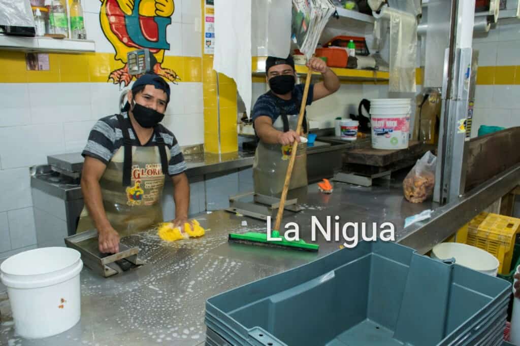 Las y los locatarios cerraron las cortinas de sus establecimientos desde temprana hora para poder realizar el lavado semanal que se lleva a cabo con el apoyo de las pipas de Hidrosistema y la Unidad Municipal de Protección Civil (UMPC).
