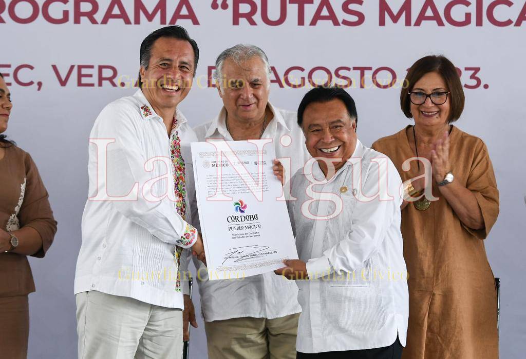 Coatepec, Ver., (17 de agosto de 2023).- Este jueves, el Presidente Juan Martínez Flores, recibió del Gobernador de Veracruz, Cuitláhuac García Jiménez y el Secretario de Turismo del Gobierno de México, Miguel Torruco Marquéz, el nombramiento que distingue al municipio de Córdoba como “Pueblo Mágico”, en un evento celebrado en Coatepec: Primer Pueblo Mágico del Estado de Veracruz.
