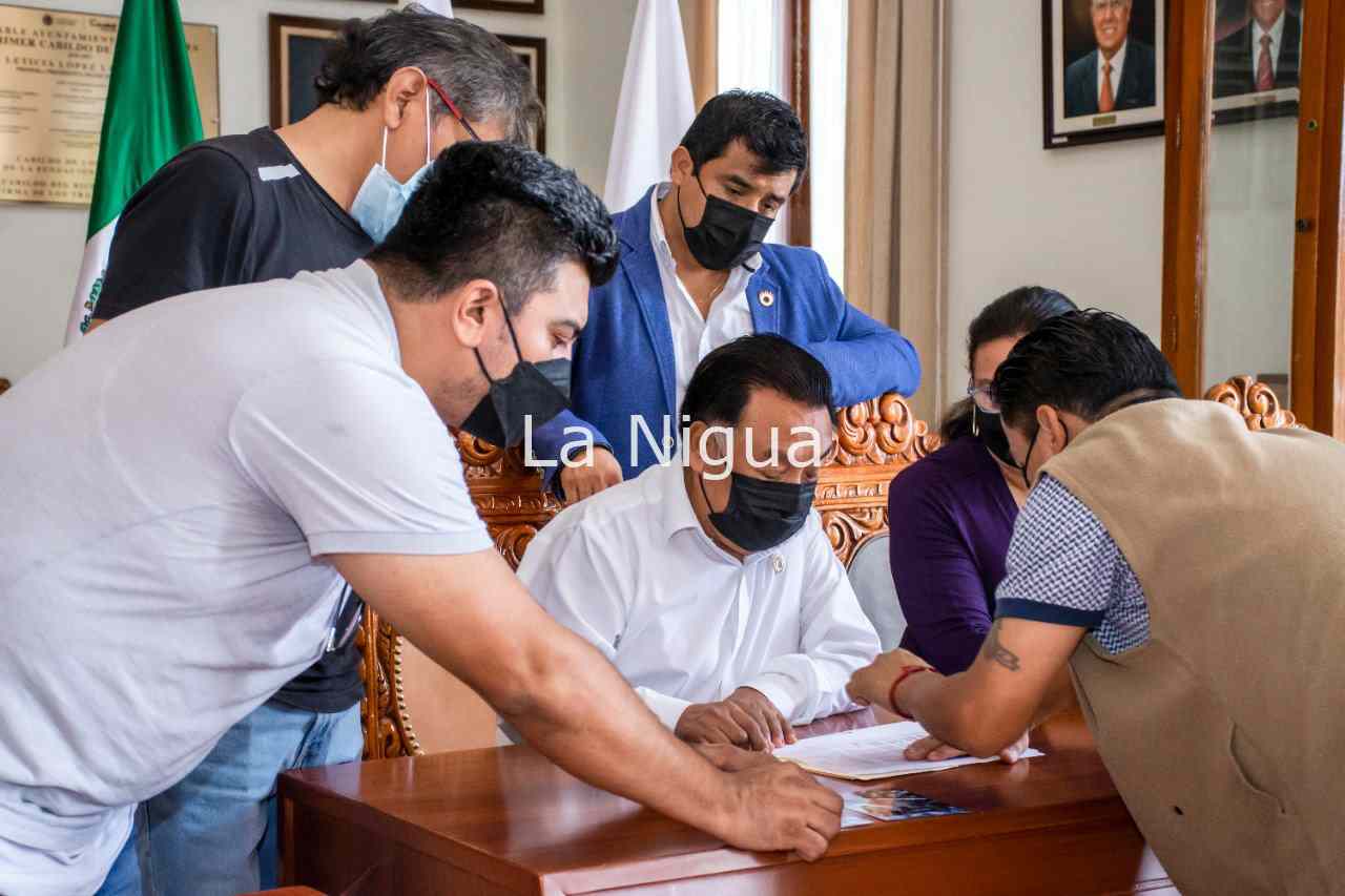 En representación de los 224 afectados por el incendio del 31 de enero de 2020, acudieron Mario Antonio Martínez Estrada, presidente del comité de obra; Miguel Ángel Rosas, vocal, así como Julio César Reynoso García y Elías Castro Palacios, quienes mostraron al Alcalde y a la regidora tercera, Georgina Aguilar Sánchez, presidenta de la comisión de Obras Públicas, fotografías de la zona que quedó inconclusa, además expresaron sus inquietudes, manifestando que están en disposición de colaborar para que se solucione todo a la brevedad.