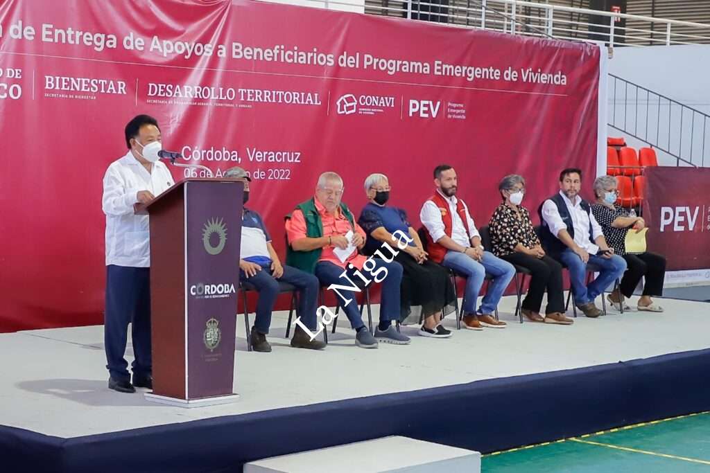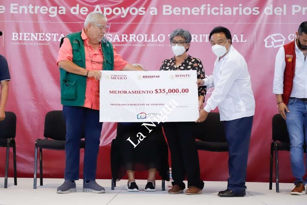 Córdoba, Ver., (06 de agosto de 2022).- El Presidente Municipal, Juan Martínez Flores, acompañó este día al Delegado de Programas para el Desarrollo en el estado, Manuel Huerta Ladrón de Guevara, a la entrega de apoyos a las y los beneficiarios cordobeses del programa “Emergente de Vivienda”.