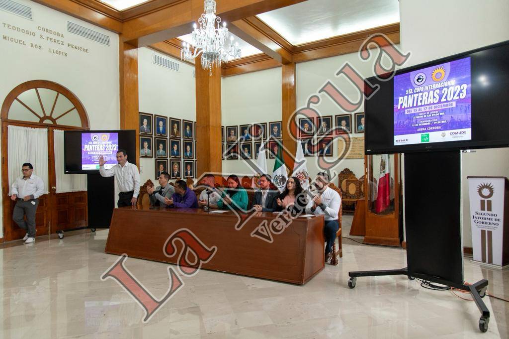 Córdoba, Ver., (14 de diciembre de 2023). – Este jueves, ediles del Ayuntamiento encabezados por la Síndica Vania López González, recibieron a la delegación de Costa Rica que participará en la quinta Copa Internacional Panteras, donde competirán más de 60 equipos de 17 clubes de los estado de Veracruz, San Luis Potosí, México, Puebla, Morelos y Guanajuato que se realizará del 15 al 17 de diciembre en la Arena Córdoba.