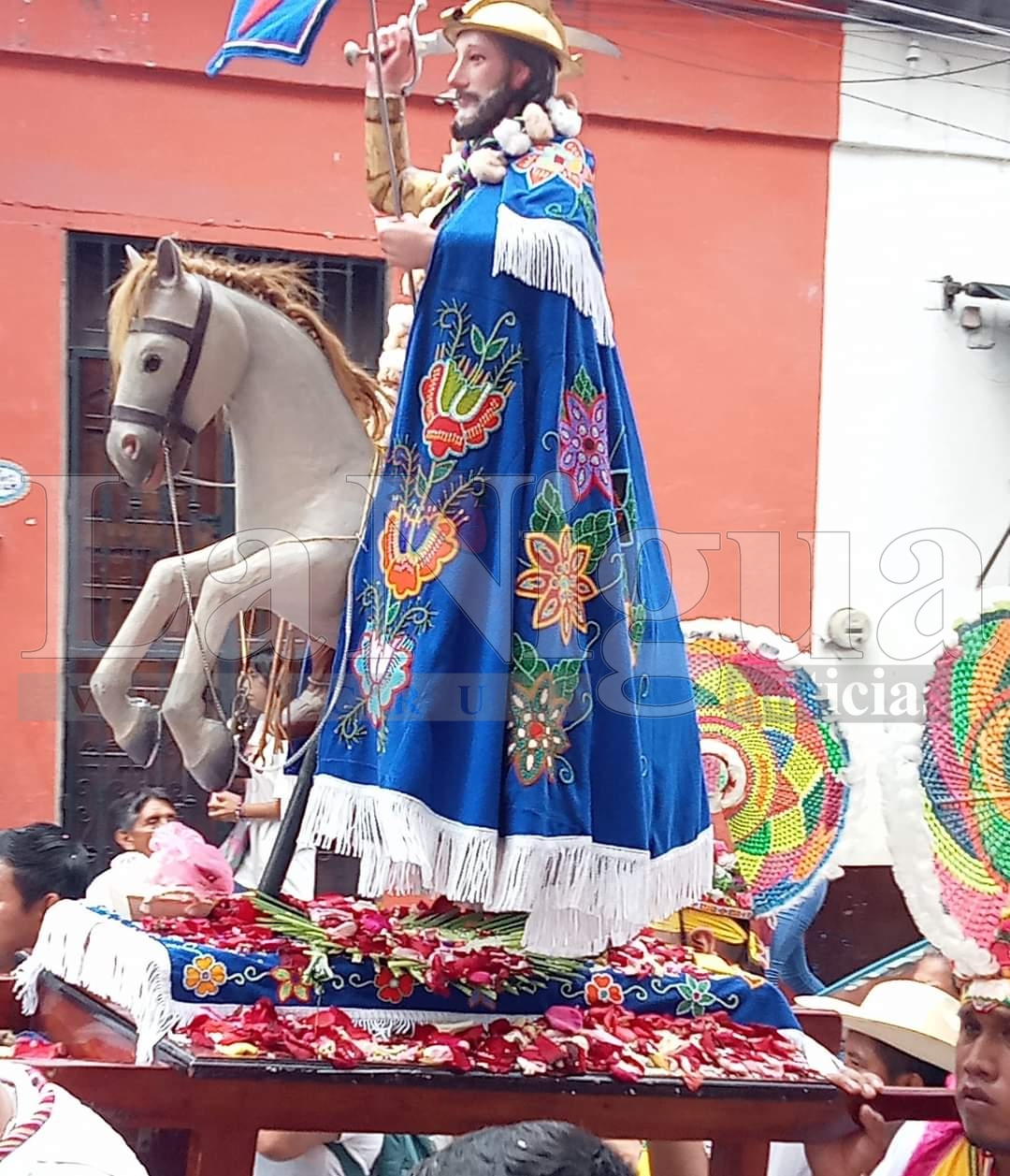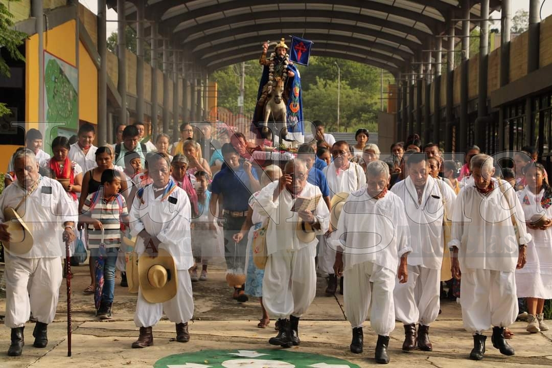 La figura de Santiago Apóstol, que se muestra con capa y a caballo, fue recibida con gran fervor por el pueblo Tutunaku. Durante su visita, la imagen recorrió el Centro de las Artes Indígenas y el KANTIKYAN, donde fue acogida por el Consejo de Ancianos. Este evento, que no se había realizado desde hace más de seis décadas, fue considerado un hecho histórico y trascendental por los asistentes.