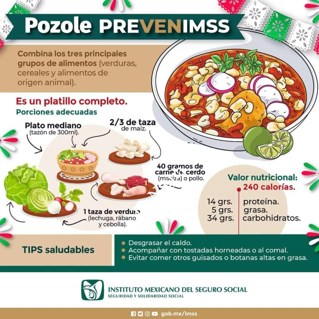 “La recomendación para el pozole es comer taza y media de maíz cocido con la cantidad de caldo que se desee, acompañarlo con suficiente lechuga, cebolla, rábano e incluso aguacate, pollo deshebrado equivalente al tamaño de la palma de la mano; se recomienda comer hasta dos tostadas horneadas y tomar agua de jamaica o tamarindo sin azúcar, de esta forma tenemos un platillo completo, sano y delicioso”, detalló.