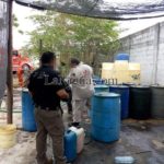 En el lugar inspeccionado, los elementos federales localizaron 11 mil 350 litros de hidrocarburo, distribuido en 96 tambos metálicos, dos tinacos de material sintético los cuales se encontraban enterrados, 71 contenedores de plástico con arnés metálico, así como varias mangueras de plástico.