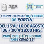 Fortín Ver., a 14 de agosto de 2020.- Atendiendo al decreto emitido en la Gaceta Oficial por el Gobierno del Estado de Veracruz el día de ayer, en el que se determinan medidas temporales de inmediata aplicación para reducir la aglomeración y movilidad de personas los días 15 y 16 de agosto derivado de la emergencia sanitaria generada por el virus SARS-CoV2 (COVID-19), el cabildo fortinense determinó acciones puntuales como el cierre del centro de la ciudad a partir de las 7 horas de este sábado y la instalación de filtros sanitarios.
