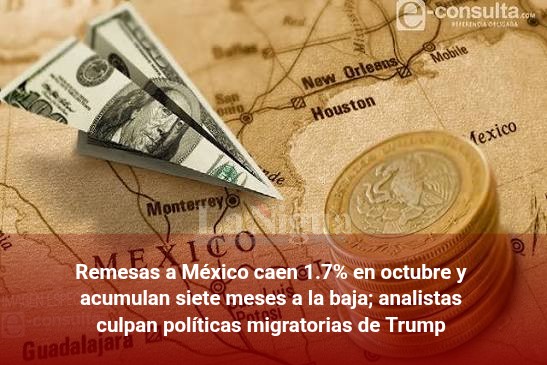 - Remesas a México caen 1.7% en octubre y acumulan siete meses a la baja; analistas culpan políticas migratorias de Trump