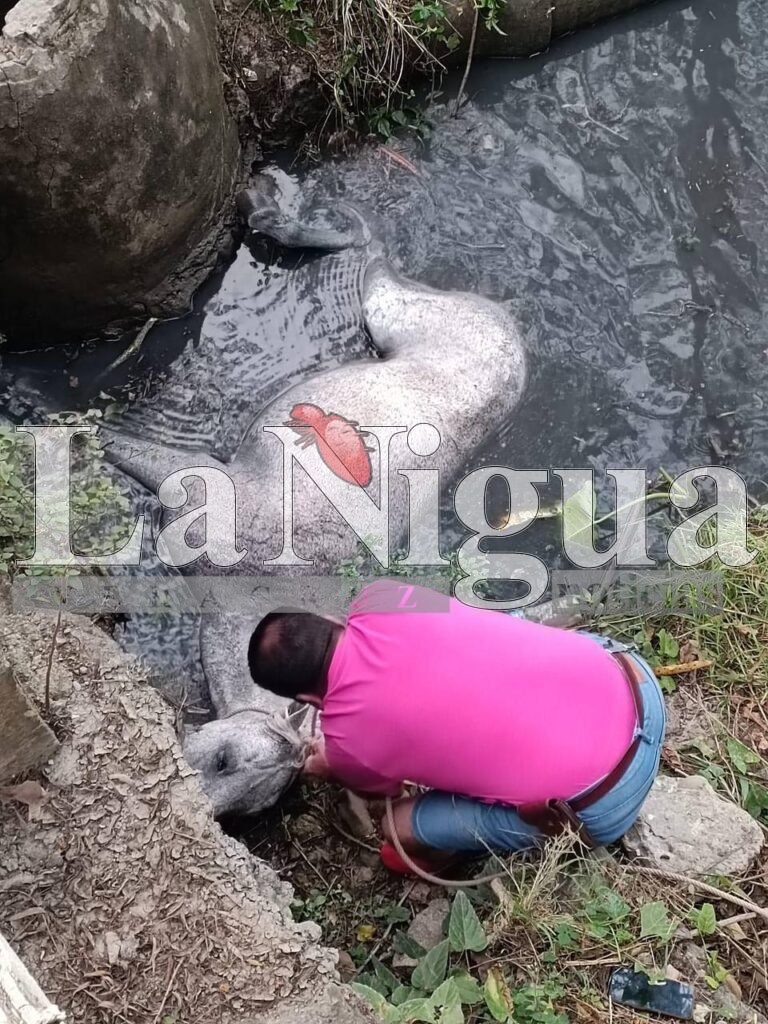 Un caballito sobrevivió gracias a un docente quien lo salvó de morir tras caer a un arroyo de aguas negras.