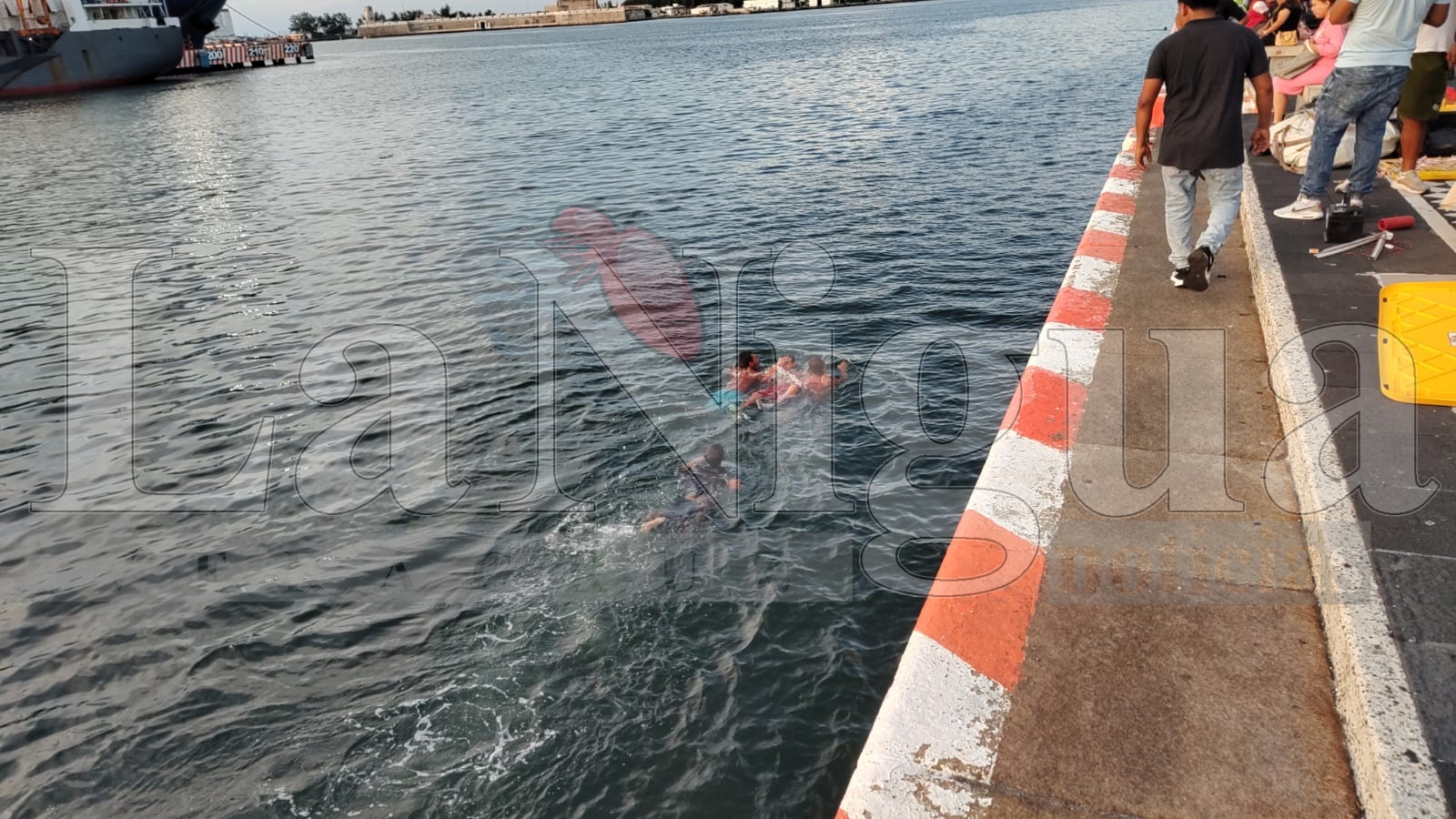 Un sacamonedas que se encontraba bajo los influjos del alcohol tropezó y cayó al mar en el malecón de Veracruz, donde fue rescatado por sus propios compañeros que afortunadamente actuaron de inmediato.