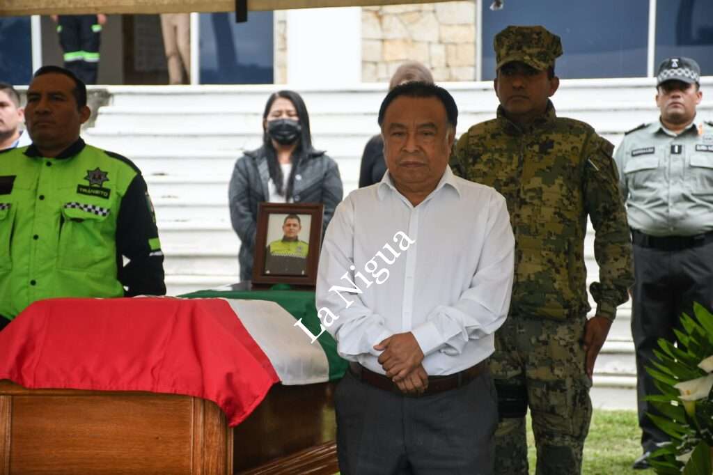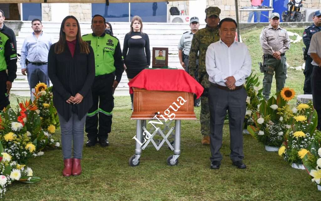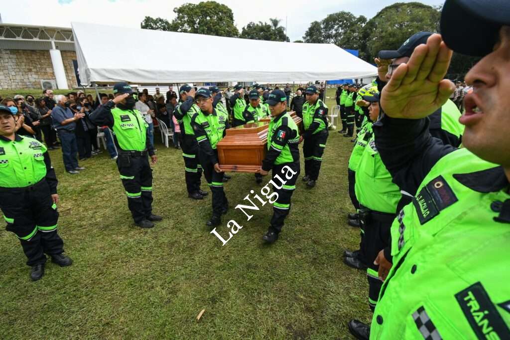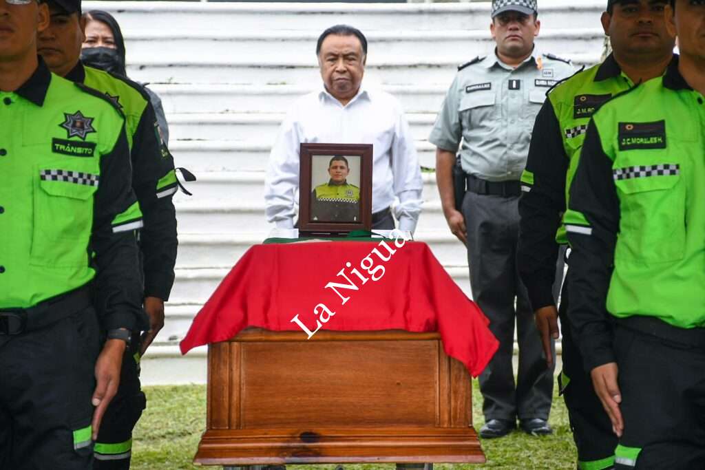 El Presidente, Juan Martínez Flores; el Director de Protección Ciudadana y Movilidad, Enrique Morales Tolentino; la regidora segunda, Isamar Balderas Flores y el Coordinador de Tránsito Municipal, Silvio García Rabanales montaron una guardia de honor junto al féretro, así como los presentes guardaron un minuto de silencio.