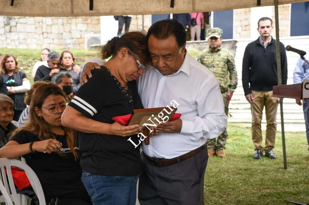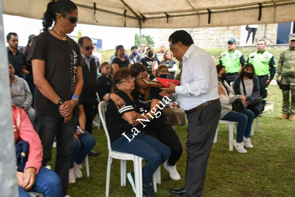 “Hoy honramos a nuestro compañero, sabemos que no existe ninguna palabra que pueda aliviar el dolor de quienes han perdido a un familiar, amigo o compañero de trabajo, quiero expresar mis condolencias y respeto a sus familiares. Ninguna palabra puede compensar esta pérdida, el mejor homenaje que podemos rendir es nuestro reconocimiento a quienes ya no están y han servido como ejemplo de entrega y pasión por su trabajo. Le reitero a la familia, cuenten con nosotros”, fueron las palabras de la primera autoridad a los dolientes.