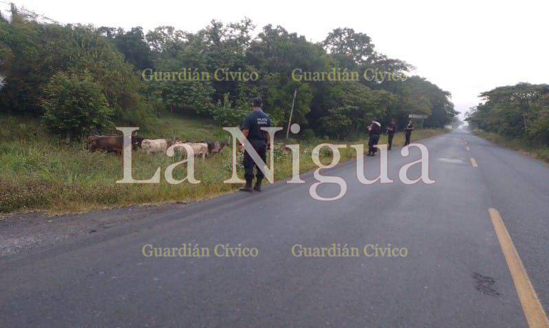 Fue a la altura de la carretera 180 Tuxpan Tampico, adelante del hotel Cervantes donde encontraron las 14 novillonas y un torete.