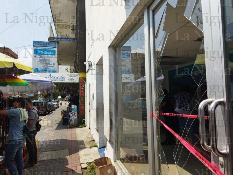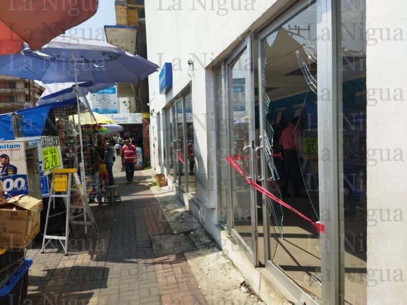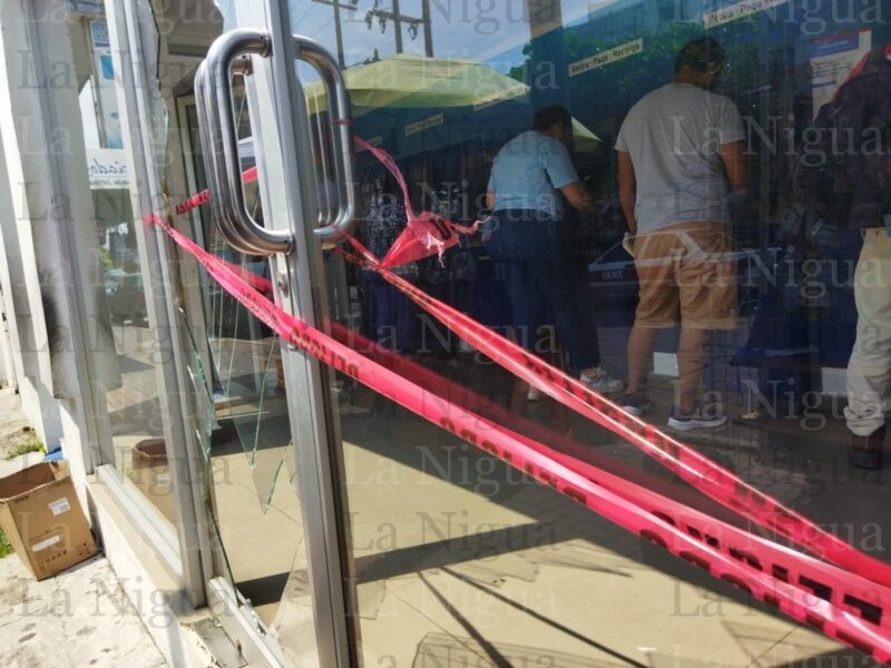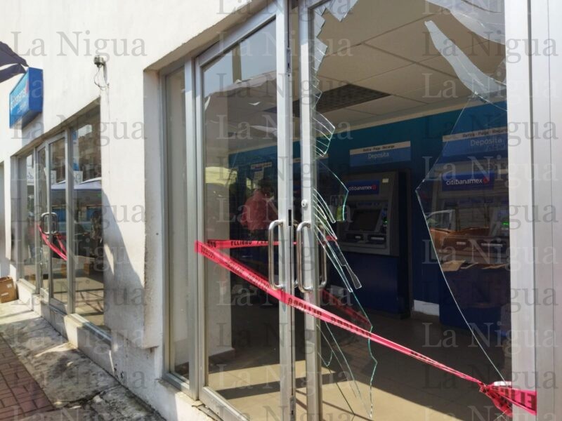 Una persona de la tercera edad resultó lesionada, después de que fueron quebradas los vidrios de las puertas del área de cajeros automáticos en la sucursal del banco Banamex, del centro de Coatzacoalcos.