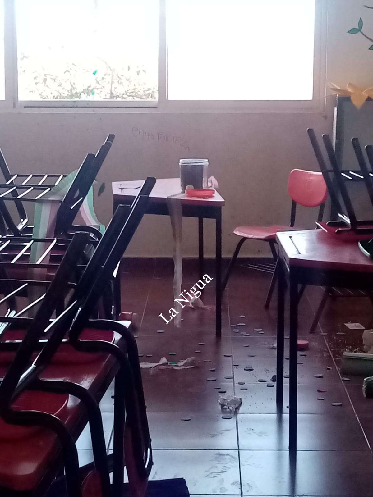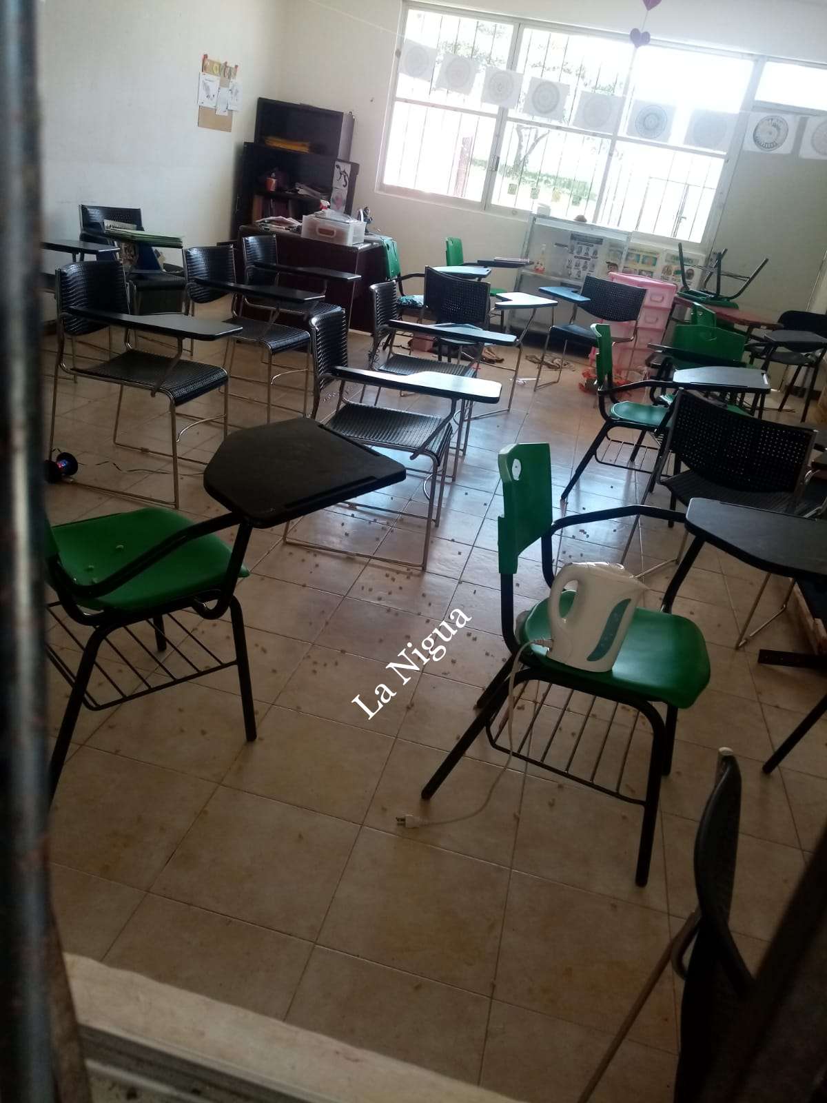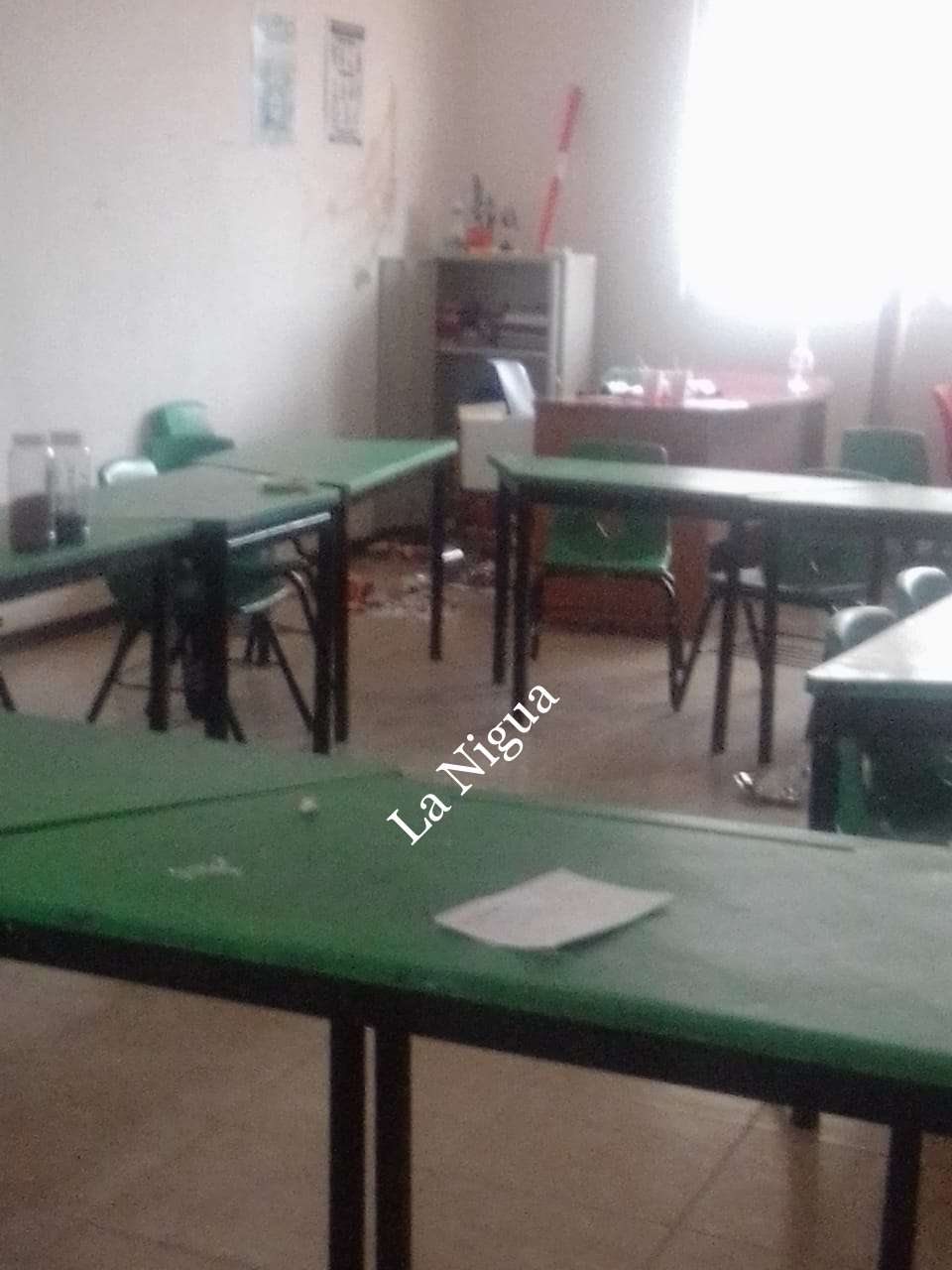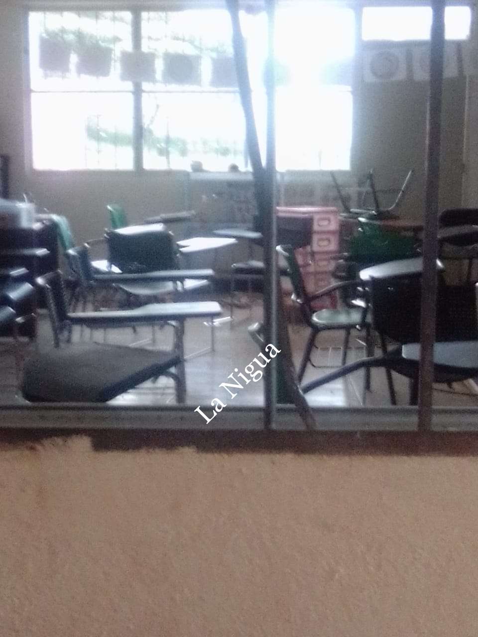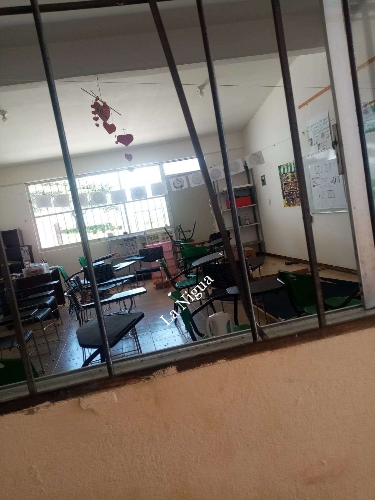 En donde rompieron cristales, barandales, barrotes y las chapas de varios salones fueron rotos totalmente.