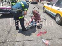 Córdoba, Ver.- Un ciclista resultó con una herida en la cabeza teniendo que ser atendido por paramédicos de la Cruz Roja, debido a que la bicicleta en que se desplazaba al no tener frenos, provocó que se impactará contra la parte trasera de un camión de pasajeros hasta quedar tendido en el pavimento de la calle 15 entre avenidas 2 y 4 en la colonia Centro.