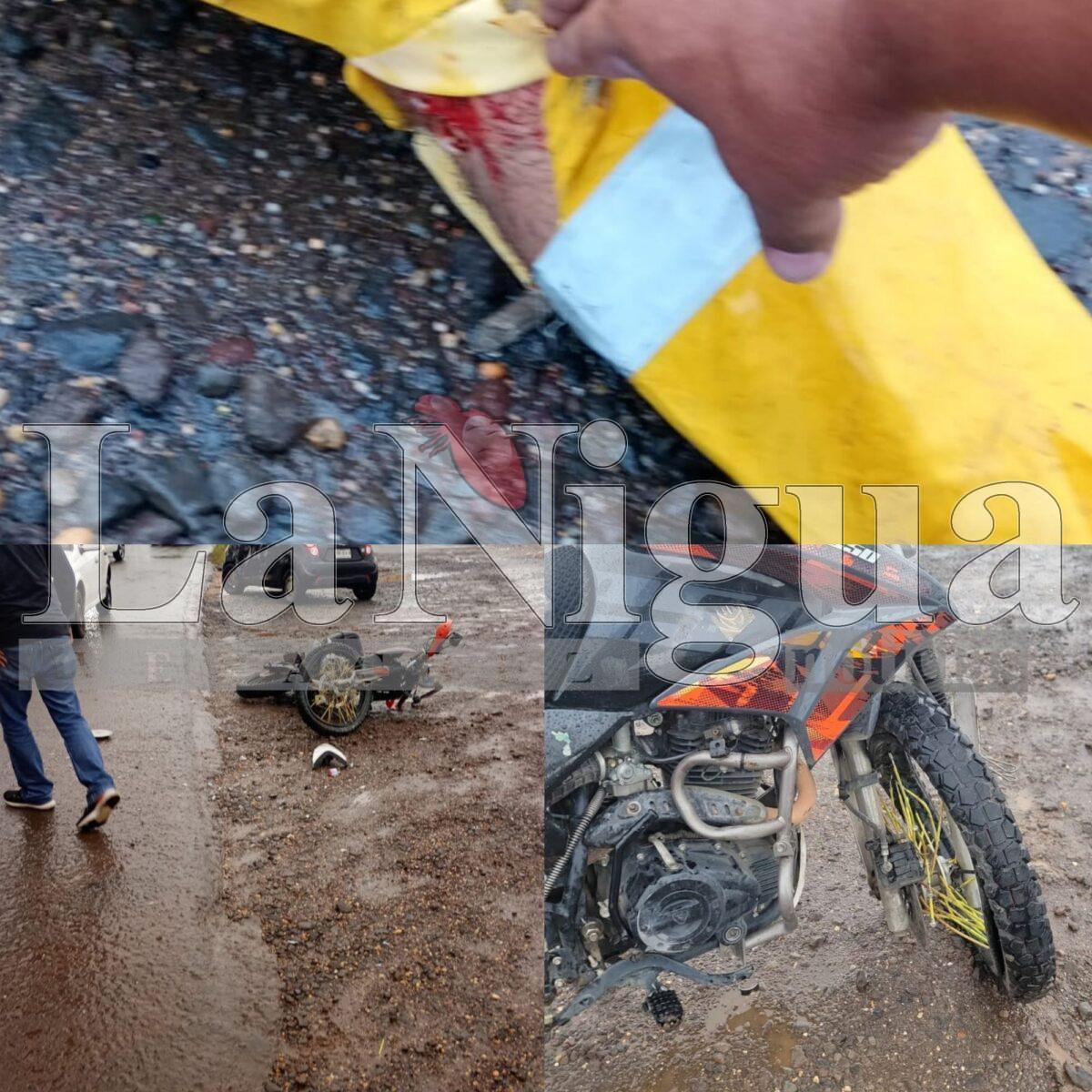 este fuerte accidente  se dio cuando el presidente de la liga bahía circulaba abordo de su motocicleta sobre carretera estatal Minatitlán Coatzacoalcos y derivado del piso mojado por las lluvias que se  sintió durante la madrugada de hoy, en un descuido perdió el control de su unidad motora termino impactando  contra un auto compacto de color negro.