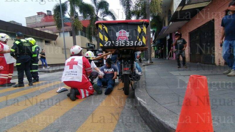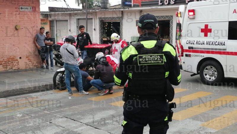 Córdoba, Ver.- Un motociclista resultó lesionado, luego de accidentarse sobre la avenida 9 con calle 1 de la colonia Centro.