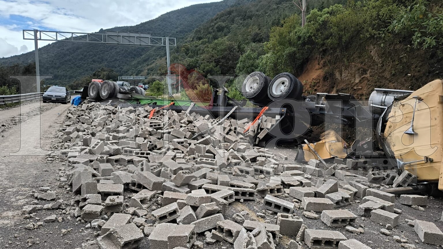 De acuerdo con información de Caminos y Puentes Federales (Capufe), el percance ocurrió cuando el conductor de un camión tipo plataforma, cargado con tabique para construcción, descendía por la zona.