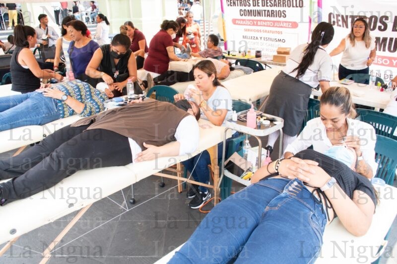 En esta ocasión, desde la explanada del Parque 21 de Mayo, la ciudadanía en general accedió a los servicios gratuitos de los Centros de Desarrollo comunitario, como alisado de cejas, rizado de pestañas y masajes.