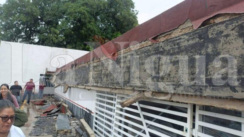 Las Choapas.— La lluvia del lunes por la noche y esta mañana ade martes dejó al descubierto algo que muchos en Las Choapas sospechaban desde hace tiempo: el nuevo Centro de Salud no solo continúa cerrado, también presenta fallas que delatan un trabajo deficiente. Un tramo del techo cayó en el área principal y mostró filtraciones, humedad y materiales que no corresponden a una construcción recién terminada.