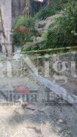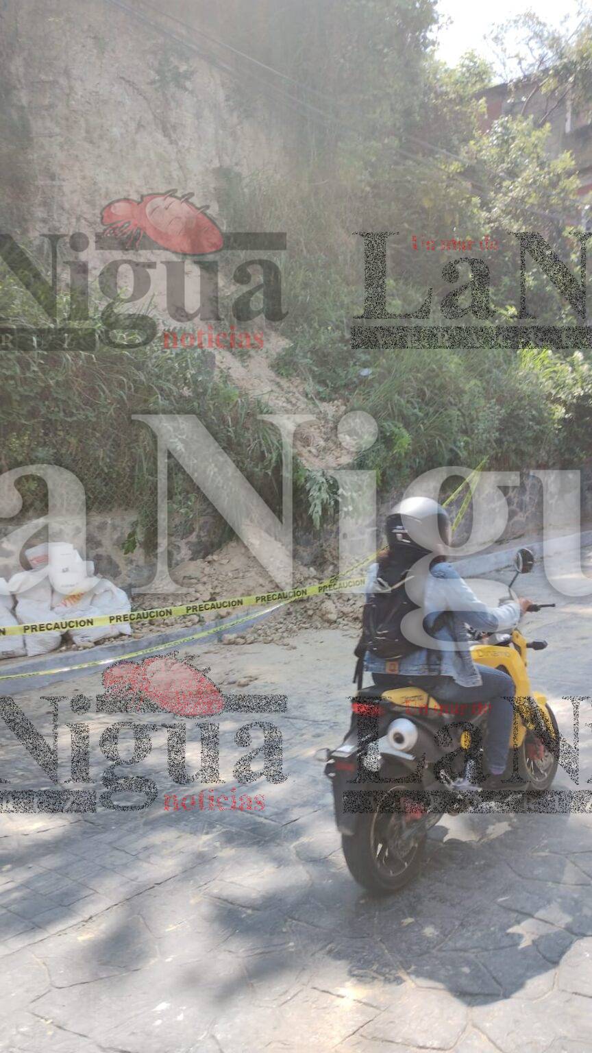 Representando un enorme riesgo para automóvilistas, comerciantes, estudiantes, peatones y vecinos, quienes estan temerosos, al caminar podría caer más tierra del cerro,