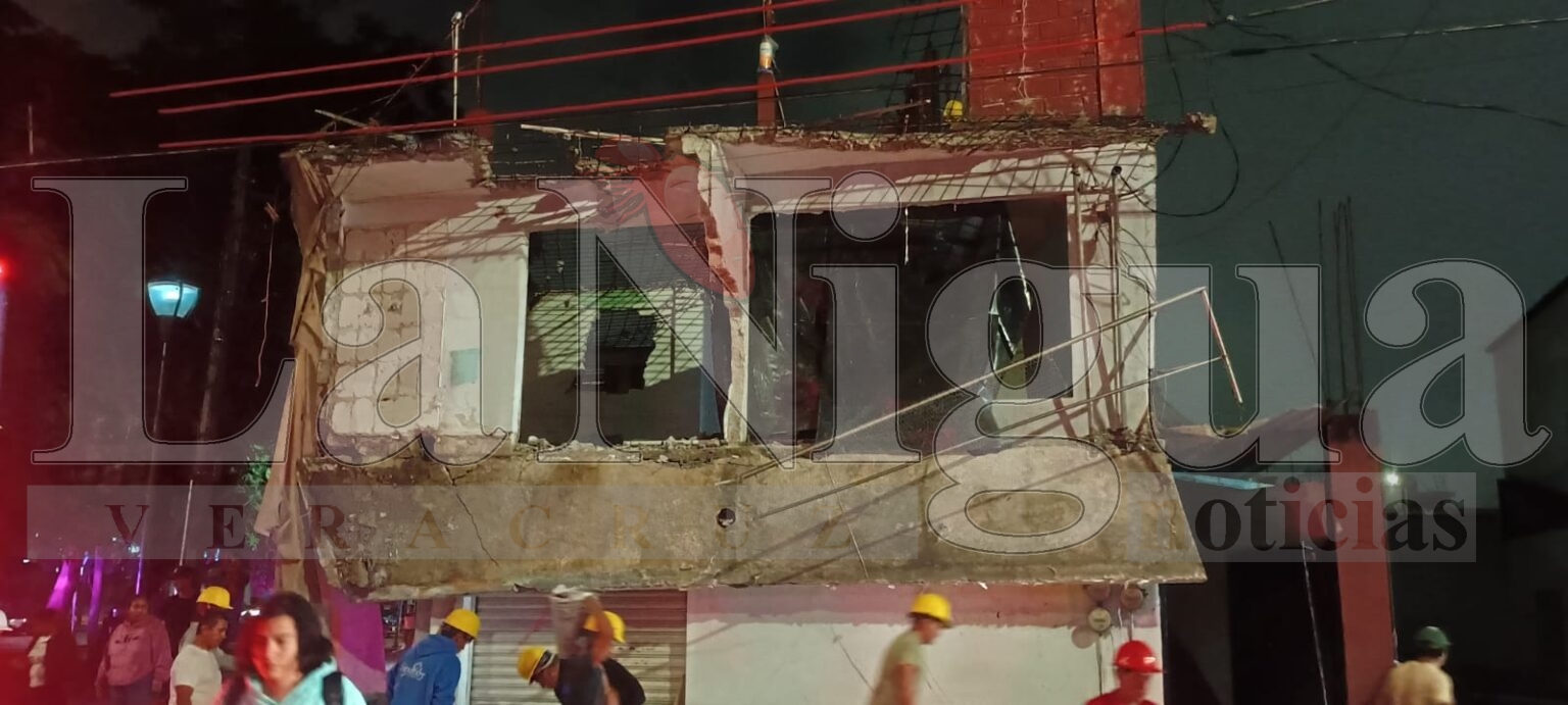 Orizaba, Ver.- Momentos de alarma vivieron vecinos de la colonia Emiliano Zapata, luego de que la techumbre de una vivienda en proceso de demolición se desplomara la tarde de este martes sobre la calle Norte 14, entre Oriente 7 y 7A.