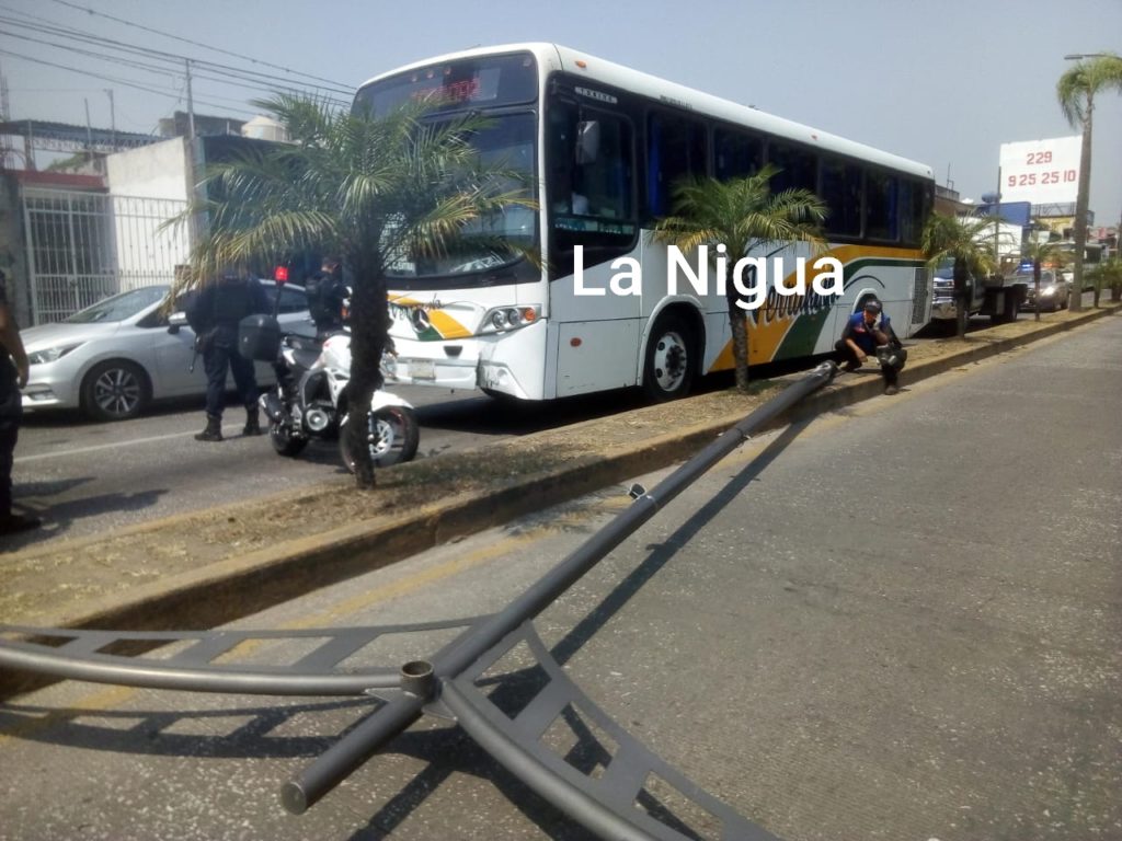 El percance sucedió la mañana del lunes, cuando se desplazaba sobre el bulevar con dirección a la central camionera un autobús de la linea Terranova. Versiones indican que al ubicarse entre las calles 29 y 31, el operador comenzó a sentirse mal de salud, por lo que perdió el control, subió al camellón y se estrelló contra un poste de alumbrado publico.