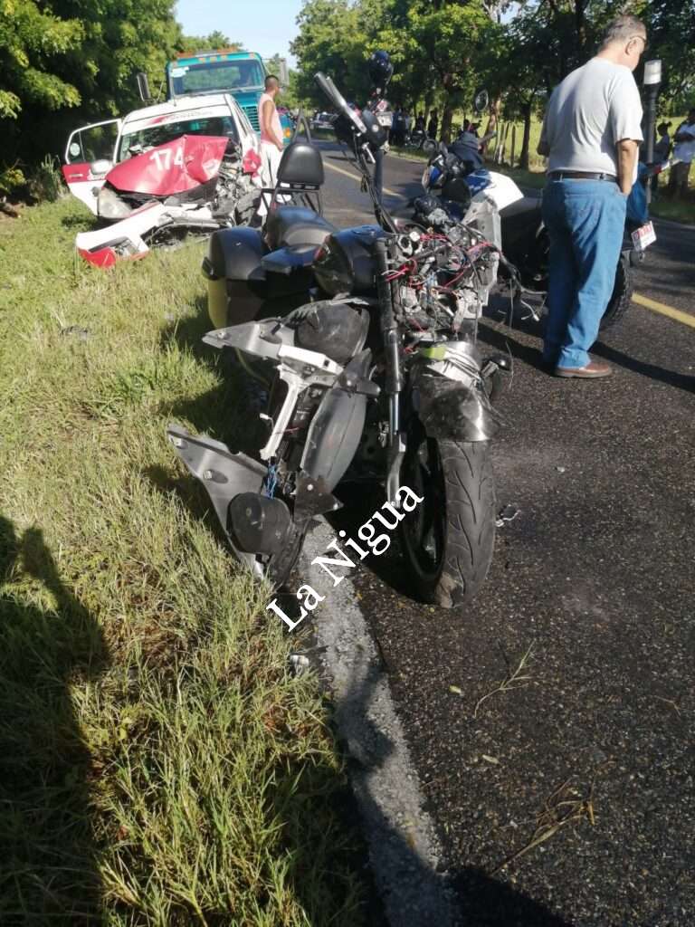 Pero, debido a la gravedad de sus lesiones de los motociclistas y del avanzado estado de embarazo de la pasajera del taxi, fueron trasladados a distintos centros hospitalarios al municipio de Papantla.