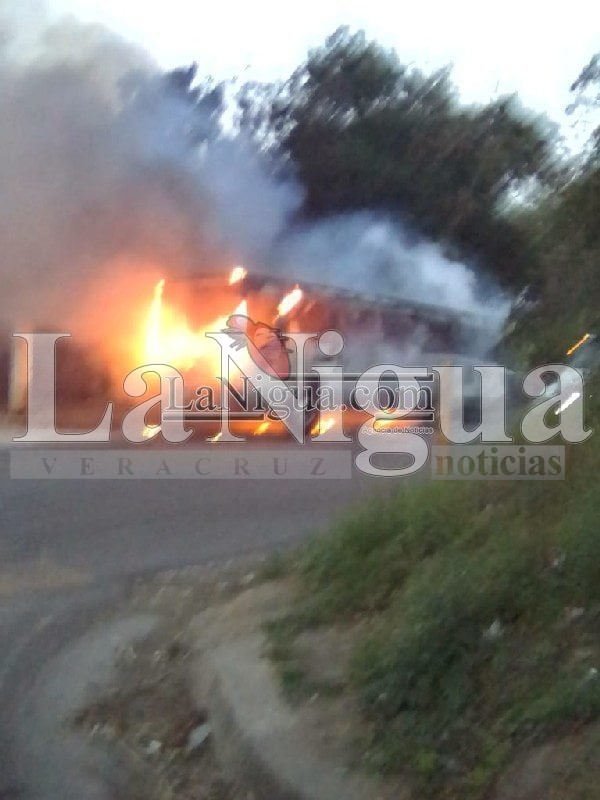 Paso del Macho, Ver.- Movilización de los cuerpos de seguridad y de rescate se registró luego de que una unidad de pasaje comenzó a incendiarse cuando circulaba sobre la carretera estatal a la altura de la colonia Buenos Aires, por fortuna no hubo lesionados, la vialidad se vio afectada por varios minutos.