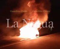 Ixtaczoquitlán, Ver.- Una camioneta se incendió por completo durante la noche del lunes, aparentemente por un cortocircuito en el sistema eléctrico, lo que provocó que sus ocupantes bajaran de inmediato para ponerse a salvo al momento de circular sobre el kilómetro 278 de la autopista México-Veracruz con dirección al municipio de Fortín.