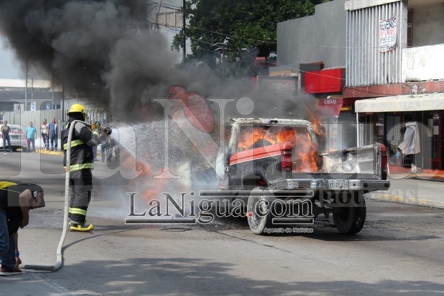 Por su parte elementos del Heroico Cuerpo de Bomberos Municipales de Veracruz se presentaron y de inmediato comenzaron a rociar con agua la camioneta, que ardió en cuestión de apenas un par de minutos.