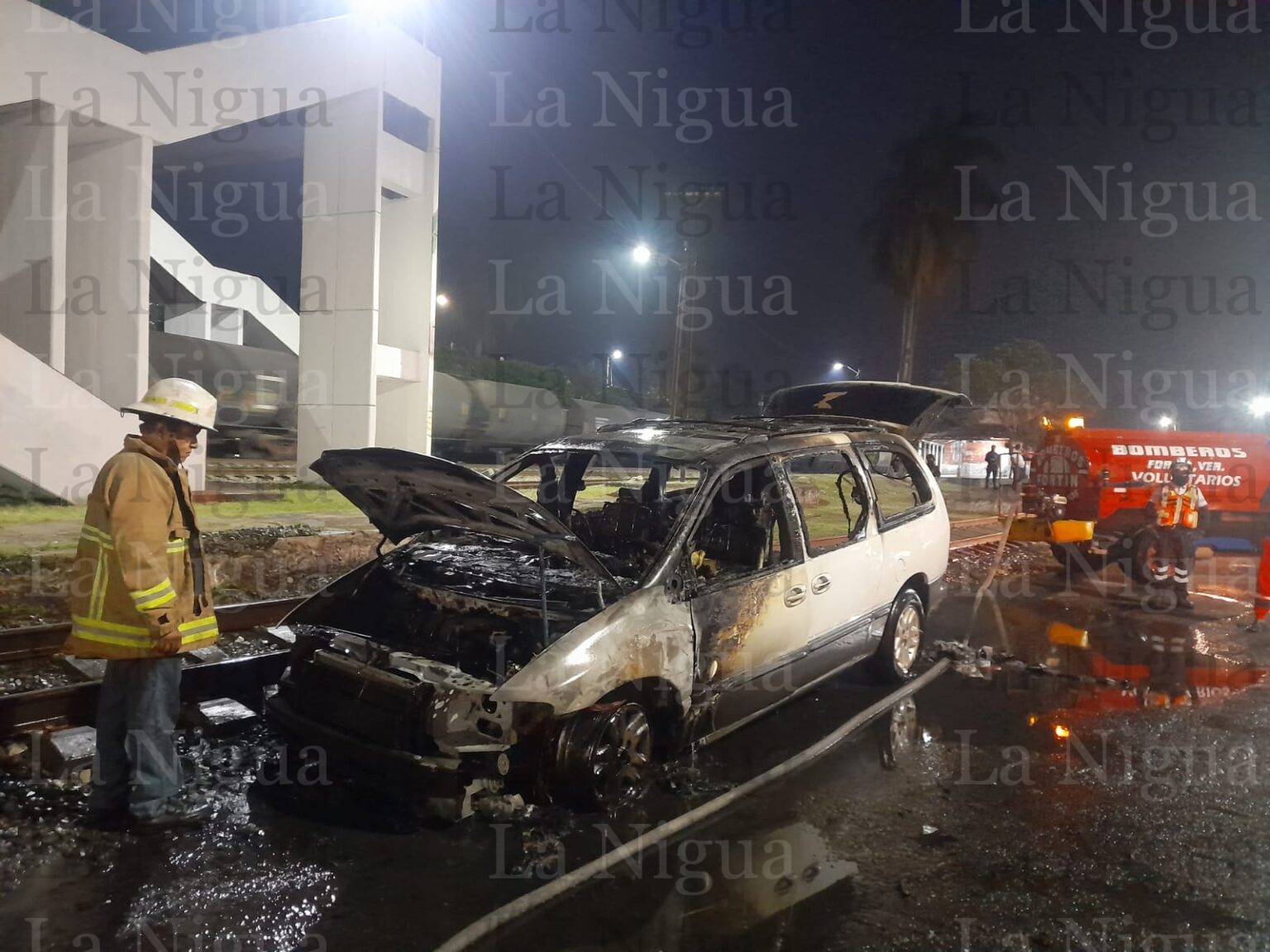 Fortín, Ver.- Una camioneta Dodge-Caravan se incendio durante la madrugada de este sábado, tras un corto circuito en el sistema eléctrico, al momento de que su conductor el cual resultó ileso, circulaba sobre la antigua estación del tren, lo cual provocó la movilización de los grupos de auxilio así como también del personal de bomberos quiénes después de varios minutos, lograron sofocar el fuego, sin embargo la camioneta fue perdida total.