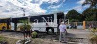 Atoyac, Ver.- Un autobús de pasajeros de la línea Autobuses Potrero ruta Córdoba-Atoyac-Paso del Macho, sufrió un cobato de incendio, cuando se desplazaba sobre la carrertera Potrero Nuevo-Córdoba, afortunadamente no se registraron lesionados.