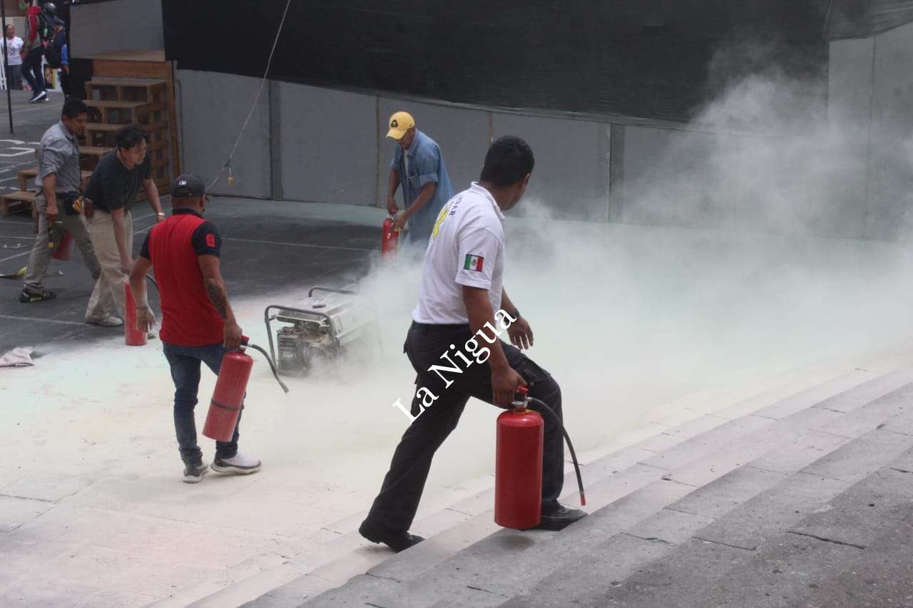 La planta de energía eléctrica, estaba prendida, por que personal de eventos especiales del palacio de gobierno, estaban instalando un templete y por lo tanto la ocupaban.