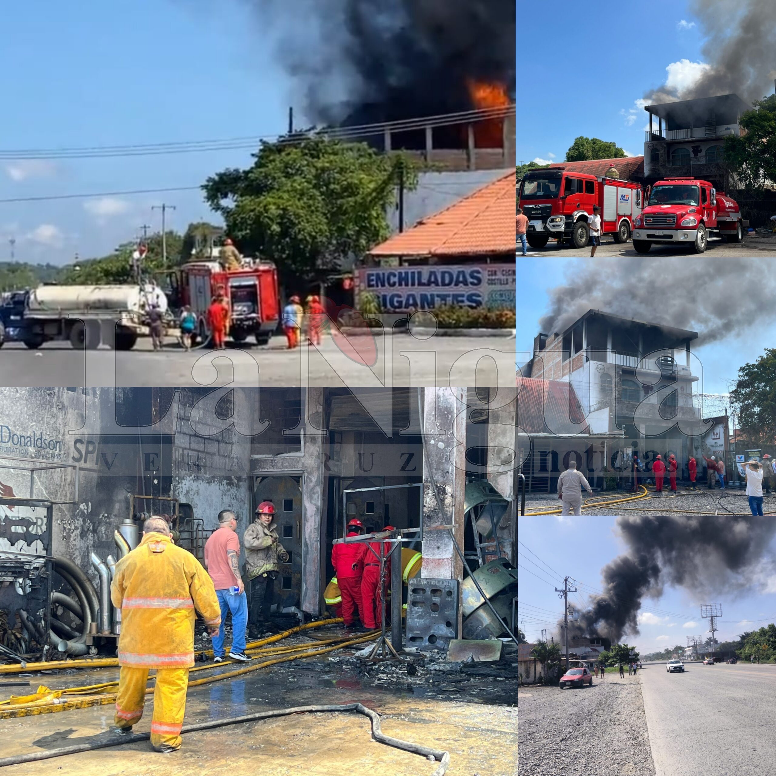 TIHUATLÁN, VER. – 30 de agosto de 2025 – Un dantesco incendio consumió por completo la refaccionaria “Tracto Accesorios Vera”, ubicada en el kilómetro 6 de la carretera federal México–Tuxpan, tramo Poza Rica–Tihuatlán, frente al acceso al aeropuerto “Tajín”. El siniestro provocó el cierre temporal de la carretera, caos vehicular y una intensa movilización de unidades de emergencia.