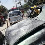 Policías Estatales acordonaron el lugar y colaboraron con las labores de rescate. Luego de varios minutos el siniestro fue controlado, tres camionetas y una vivienda resultaron dañadas por el fuego.