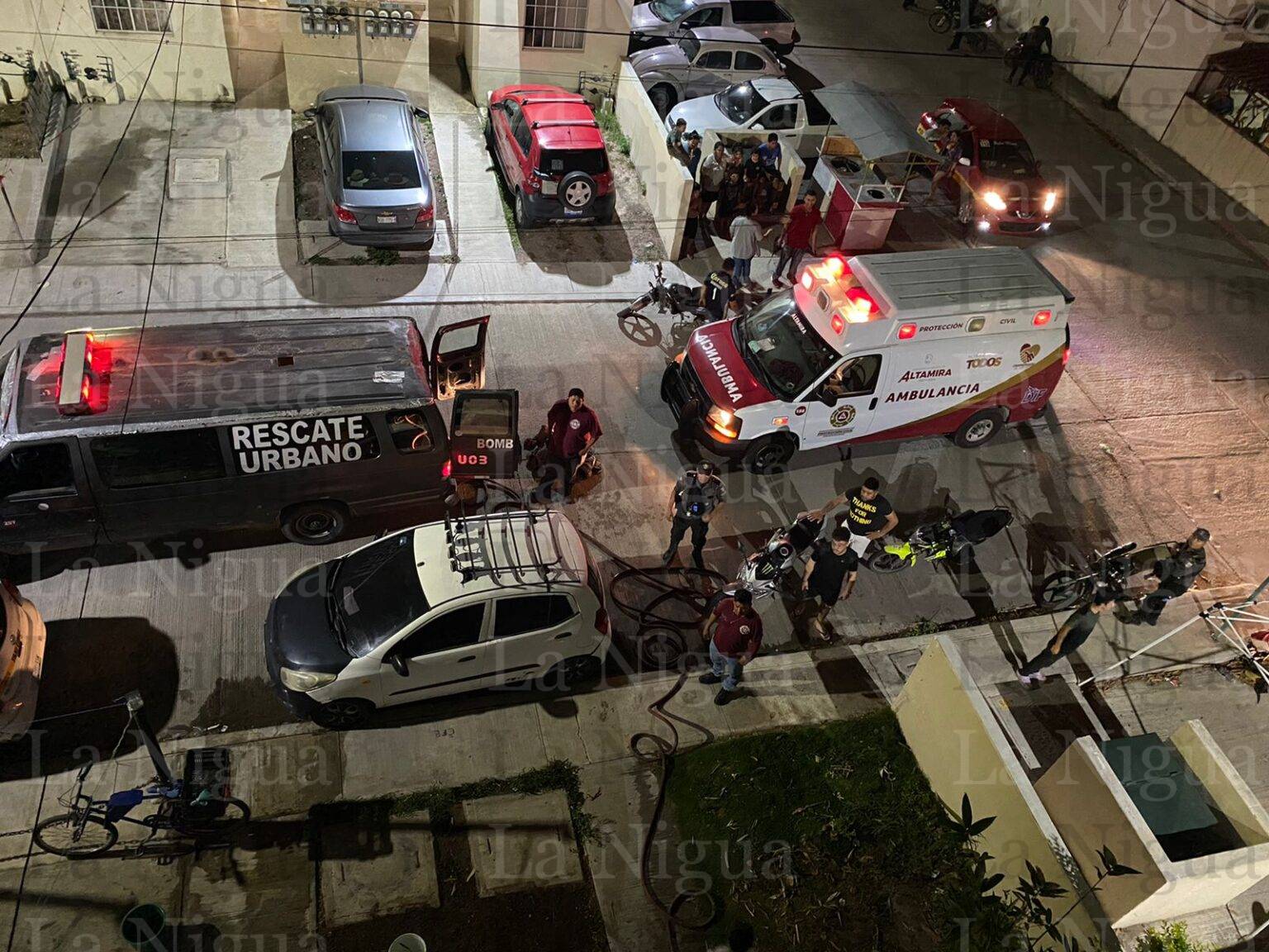 Arribando posteriormente una ambulancia de bomberos y un camión cisterna de bomberos Altamira al mando del oficial Amieba, logrando sofocar las llamas en pocos minutos, mientras la familia fue trasladada a la clínica DIF Altamira, donde fueron estabilizados, sin que se registraran personas lesionadas.
