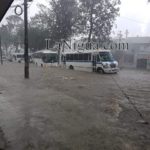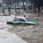 Xalapa, Ver.- Debido, a la lluvia que cayó esta tarde de jueves en esta ciudad de Xalapa, hubo varias inundaciones como en la avenida Américas y calle Enrique Hernández Castillo, donde el conductor del taxi número económico XL7316 no pudo controlar la unidad y quedó bajo el agua.