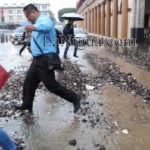 En la avenida Orizaba se vino abajo un tremendo árbol, y en la calle de Enríquez y Revolución, por la fuerte corriente arrastro las piedras de la obra que están haciendo sobre la calle Revolución, ocasionando que la tierra cubriera gran parte de la calle de Enríquez y la corriente inundó una parte de pasillo de palacio de gobierno y dificultó la vialidad de los automovilistas, afortunadamente no hubo personas lesionadas.