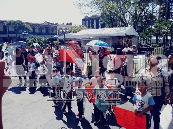 Córdoba Ver.- Padres de familia del Jardín de niños “Rosaura Zapata” iniciaron una manifestación al salir de clases por lo que se trasladaron al parque 21 de mayo con carteles y estudiantes de la mano.