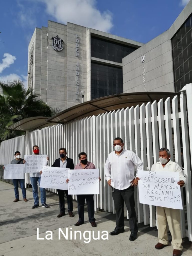 Por último señaló el presidente de los abogados, le hacemos un llamado al congreso del estado de Veracruz, no se ha preocupado para que se lleve a cabo una iniciativa de reforma, en la cual se pueda llevar a cabo en este caso la justicia en línea, que venimos reclamando desde que inició lo de la pandemia del Coronavirus Covid-19, ” lo pueden hacer, no lo quieren hacer ” pero también se le deci al partido Morenista que tengan en cuenta que el pueblo de Veracruz en ja próximas elecciones se va acordar de ellos, los manifestantes portaban en sus manos cartulinas con varias consignas en donde piden la renuncia de Sofía Martínez Huerta “.