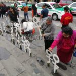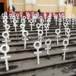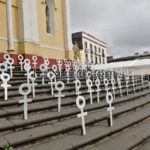 Xalapa, Ver.-La activista Xalapeña , Myriam Lagunes Marín, acompañada, por otras mujeres colocaron 147 cruces representando el número de Feminicidios en el estado de Veracruz, en las escalinatas de la Catedral.