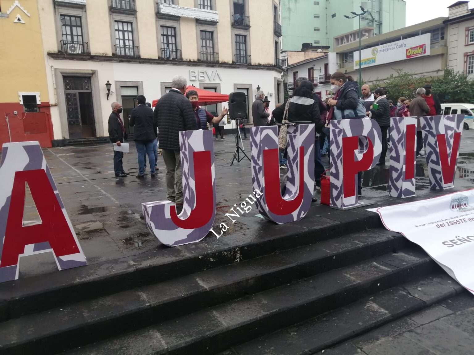 Esta mañana de jueves 6 de octubre de nuevo retornan a la plaza Lerdo los integrantes de la agrupación Estatal de jubilados y pensionados del Issste en el estado de Veracruz (AJUPIV), ya que no han dado solución a sus demandas de pago, que están solicitando desdé hace dos administraciones anteriores por lo tanto se están manifestando esta mañana lluviosa Y con frío en esta ciudad de Xalapa en la plaza Lerdo, hay que recordar que el último Platón de estos integrantes de la AJUPIV, fue el pasado 5 de mayo de este año, así lo manifestó el presidente de la AJUPIV, Faustino Carrasco Tejeda.