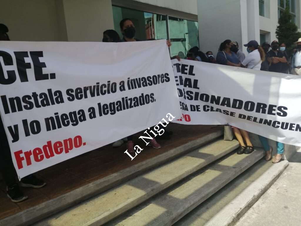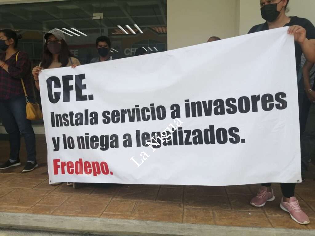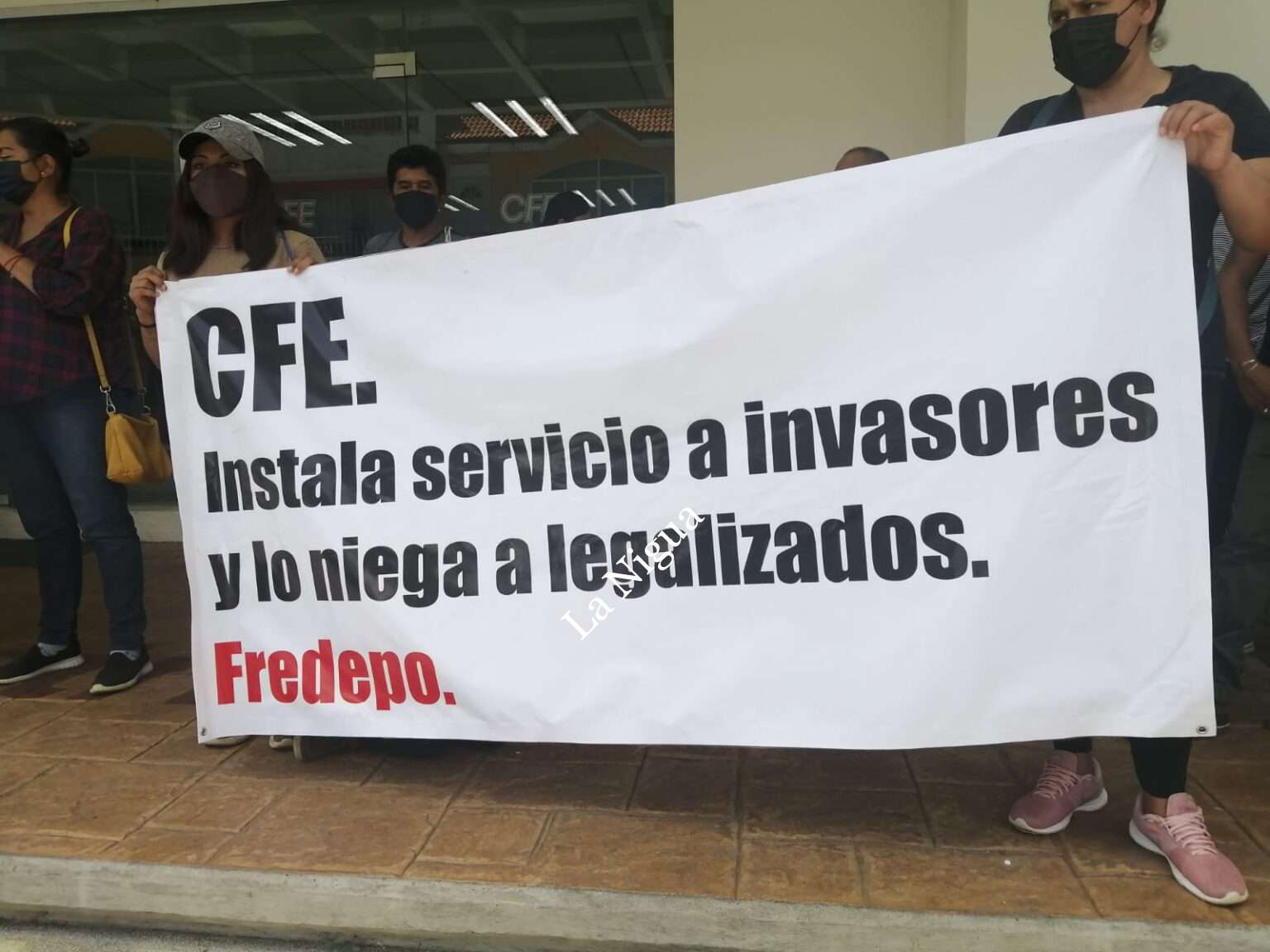 Xalapa, Ver.- Integrantes de la organización, Frente de Defensa Popular (FREDEPO), se manifestaron en las oficinas de la distribución oriente de la Comisión Federal de Electricidad (CFE), ubicadas en la calle Allende número 155 colonia centro de esta ciudad de Xalapa, piden que los reciba el gerente General de estas oficinas ya que tienen pendientes de ampliación de energía eléctrica y nos están cobrando muy caro, la gente ds de muy escasos recursos, ya no quieren estarse colgando de los postes y quieren pagar su luz, como todo ciudadanos responsables así lo manifestó, Raúl Ruiz, presidente del comité municipal de Xalapa Fredepo.