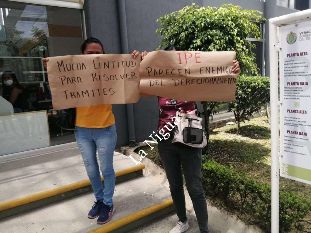 “Nosotros entregamos un expediente y resulta que después de cinco meses nos rechazan el expediente y nos piden una actualización, lo volvemos actualizar y nuevamente nos rechazan el expediente, porque nos piden el instituto del seguro social (IMSS), la actualización, y mientras siguen pasando las quincenas, meses y la gente sin trabajar desde luego, porqué se supone que en casos de dictamines de invalidez la secretaría de educación de Veracruz (SEV), les suspende sus pagos, la familia tiene que comer, la familia tiene derecho a la salud, cosa que mientras no esté el acuerdo aquí en el IPE, no puede tener derecho a la salud, tienen hijos estudiendo y quien mantiene a sus hijos, hay caso de agremiados que tienen un año sin poder cobrar, no entendemos por que razón en este tipo situaciones la dirección general del IPE a cargo de Daniela Griego Ceballos, no actúa de inmediato y no vemos respuesta, hemos pedido una anuencia con la directora y nada”.