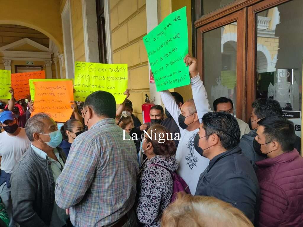 Orizaba, Ver .- Taxistas de la región de Orizaba, realizan una manifestación está mañana de martes, afuera de la oficina de hacienda estatal para exigir que no les pongan trabas en sus trámites.