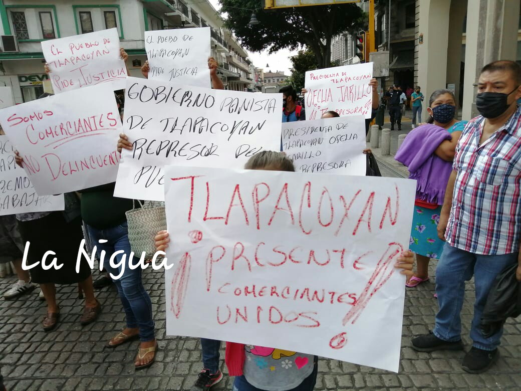 Un grupo de vendedores ambulantes del municipio de Tlapacoyan se encuentran bloqueando toda la calle de Enríquez frente a palacio de gobierno, vienen a pedir anuencia con el gobernador Cuitláhuac García Jiménez, el motivo es por la represión que están viviendo en este municipio y señalan directamente a la presidenta municipal. Ofelia Jarillo Gasca, así lo manifestó el representante de los manifestantes Leonardo Ramírez Moreno.